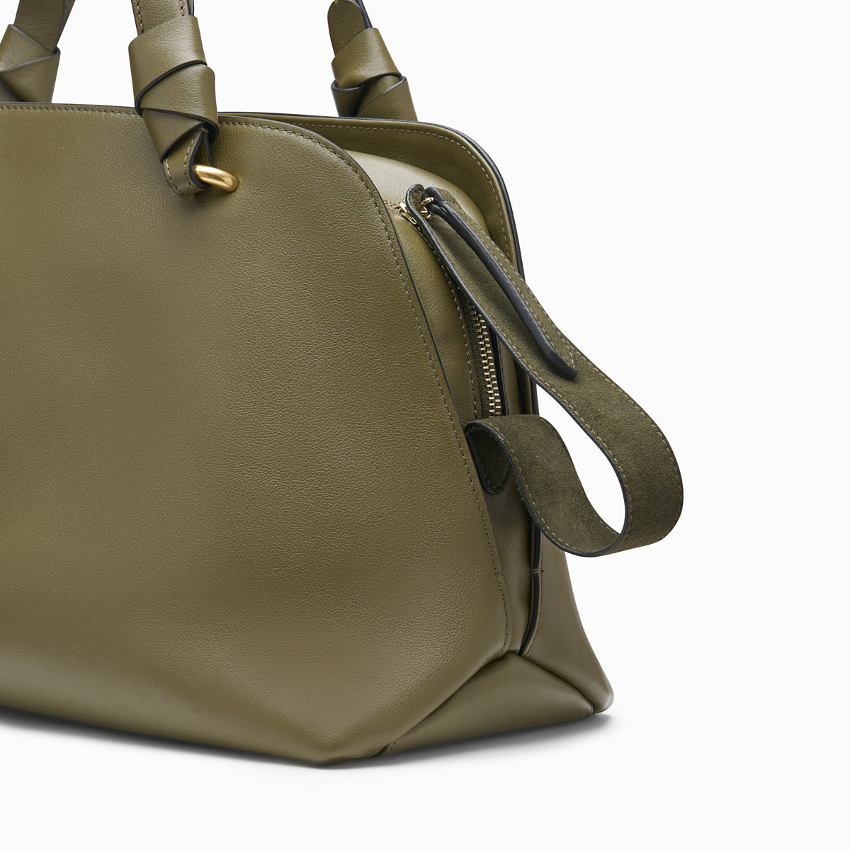ARIES is a sumptuous, wide holdall that transforms into an oversized clutch thanks to our hand inlet at the base. While the structured top bar and zippers meet the informal knotted joins of the handles, in a bid to soften structure and plays out in subtle shades of grey and sand suede, and rich burgundy and black leather.