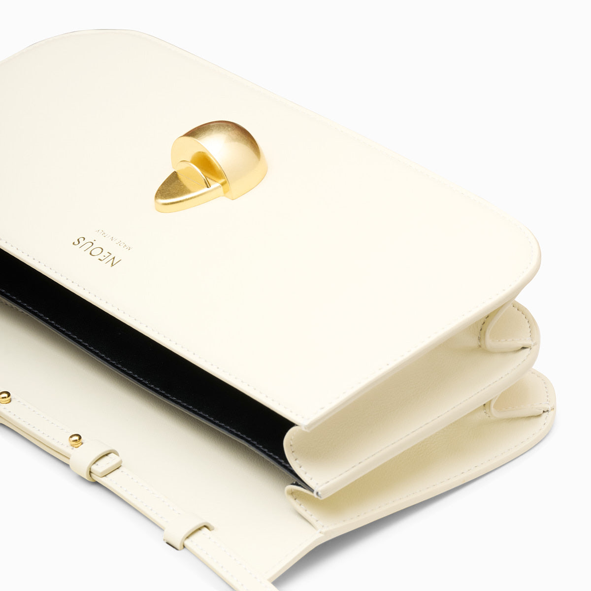 An elongated version of the classic PHOENIX, the shoulder bag is complete with an adjustable strap that can be worn at the shoulder or removed entirely and transformed into a clutch. Secured by NEOUS’ signature egg magnetic closure, the gusset creates a roomy interior divided into two compartments.
