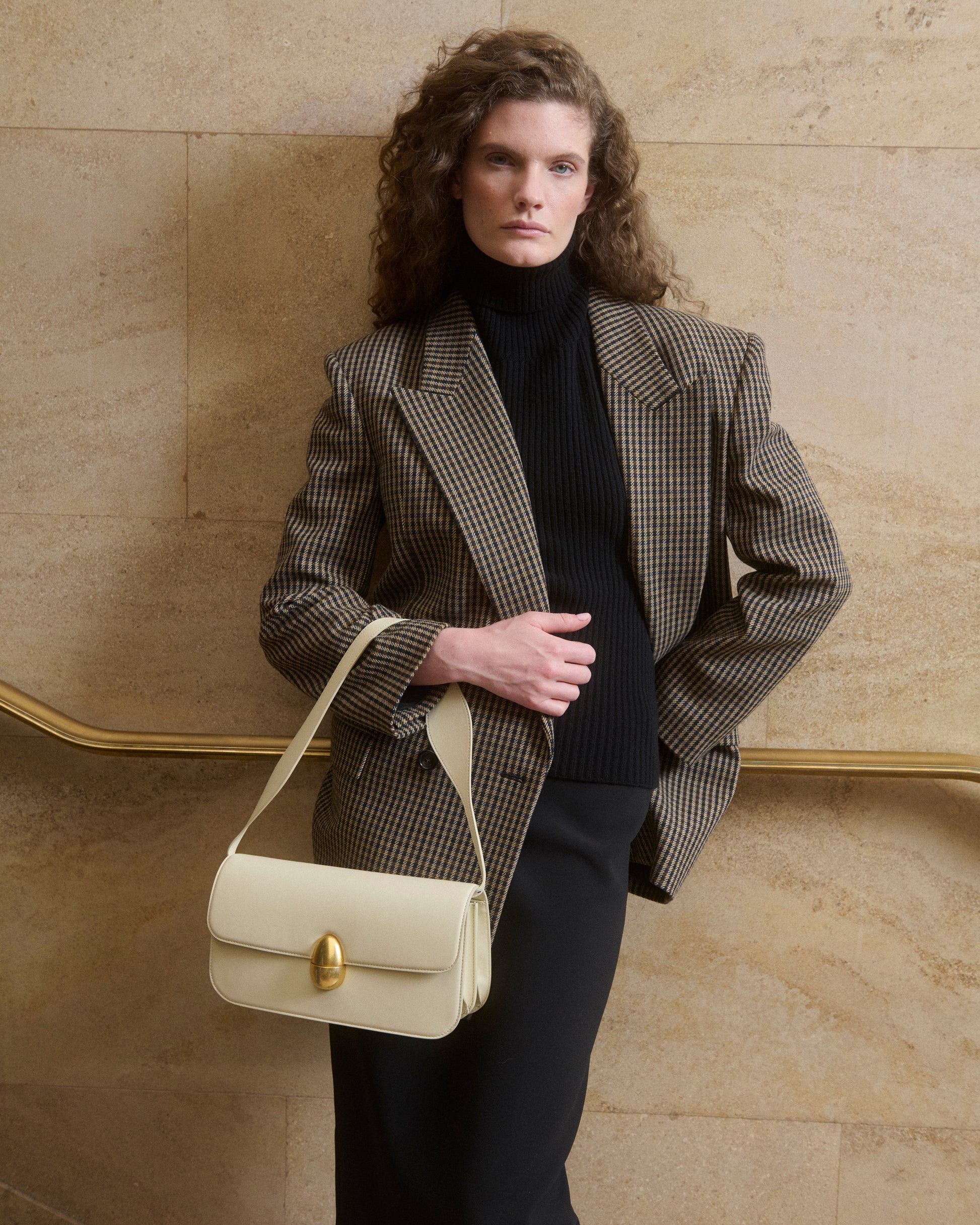 - Magnetic fastening and hardware in vintage gold finish